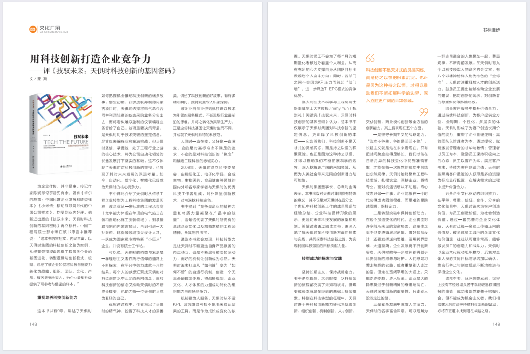 书中提到“竞争是企业的精神力量和物质力量凝聚在产品中的较量”,这句话代表了天俱时所拥有的卓越企业文化以及精益求精的工程师精神,是其制胜法宝。